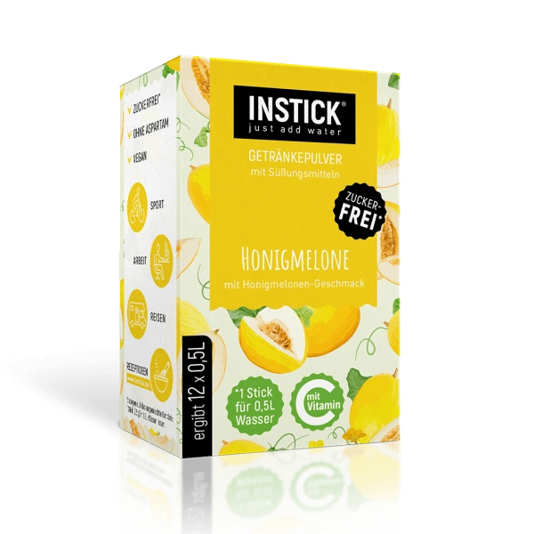 12 sticks for preparing a low-calorie, sugar-free drink with a sweet and refreshing melon flavor. Each stick is suitable for 0.5 liters of water.