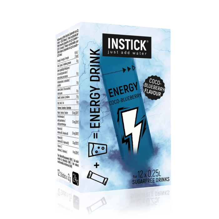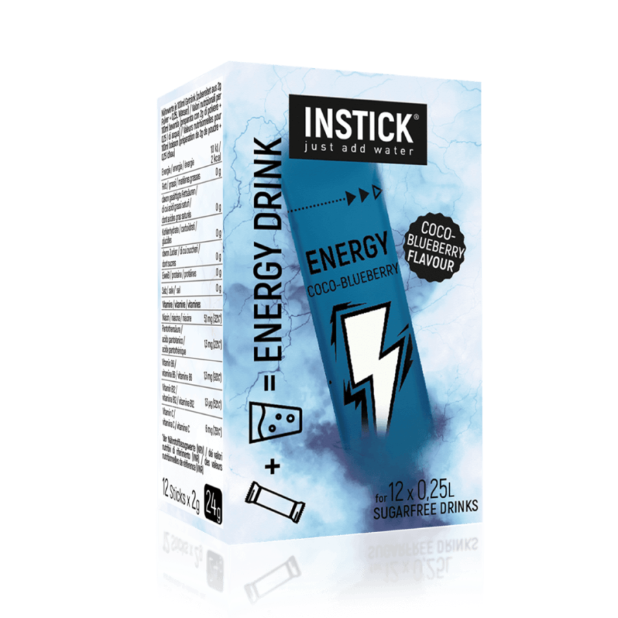 Discover the new INSTICK energy drink in coconut and blueberry flavor – sugar-free, with increased caffeine, taurine, and five important vitamins.